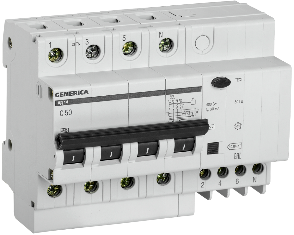 Диф авт АД14 4Р 50А/ 30мА GENERICA - заказ