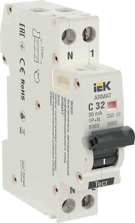 Диф авт АВДТ 32 C32 (32А)/ 30мА B06S (18мм) ARMAT IEK