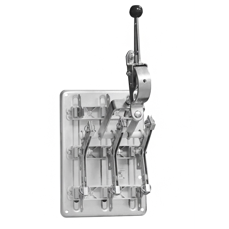 Переключатели имеют две системы неподвижных контактов и три коммутационных положения. В среднем положении ножей цепи разомкнуты и фиксируются приводом. Привод фиксирует ножи в этом положении.