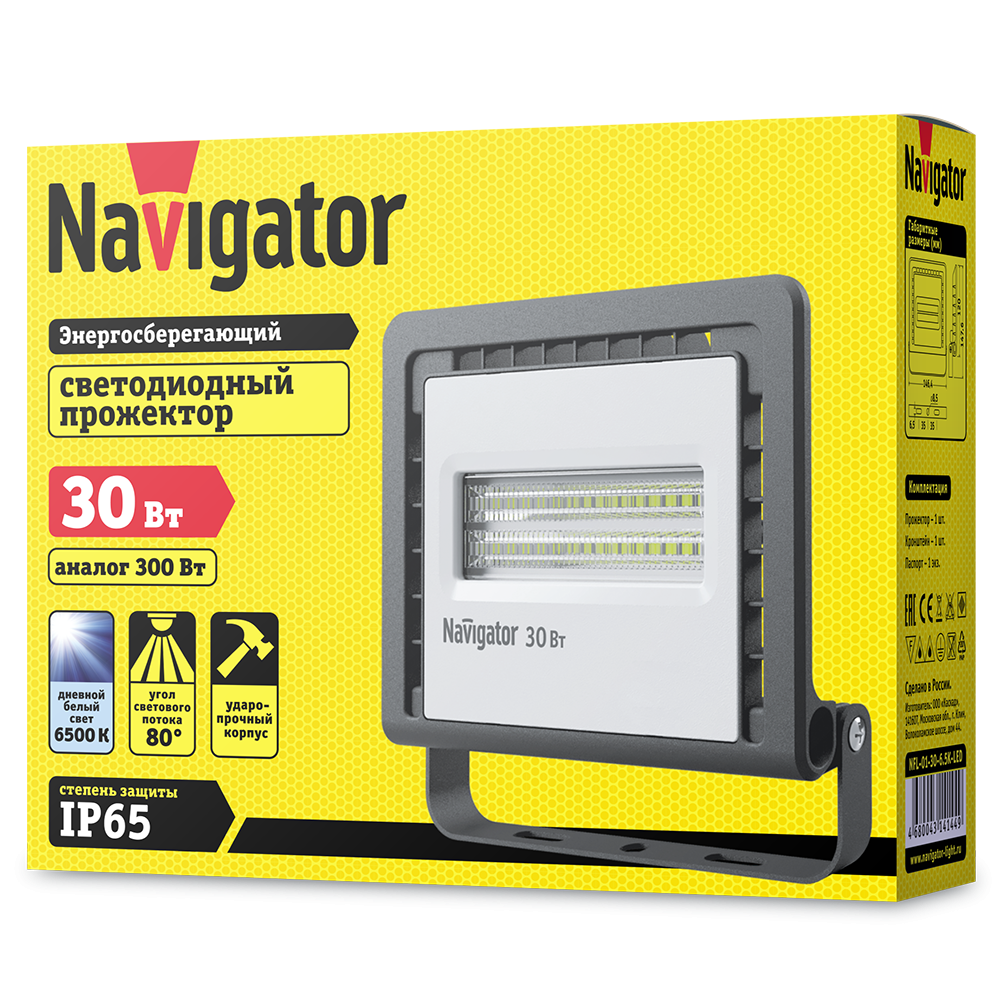 Прожектор 30W 2400Lm 6500K NFL-01-30-6.5K-IP65-LED Navigator (1/48)