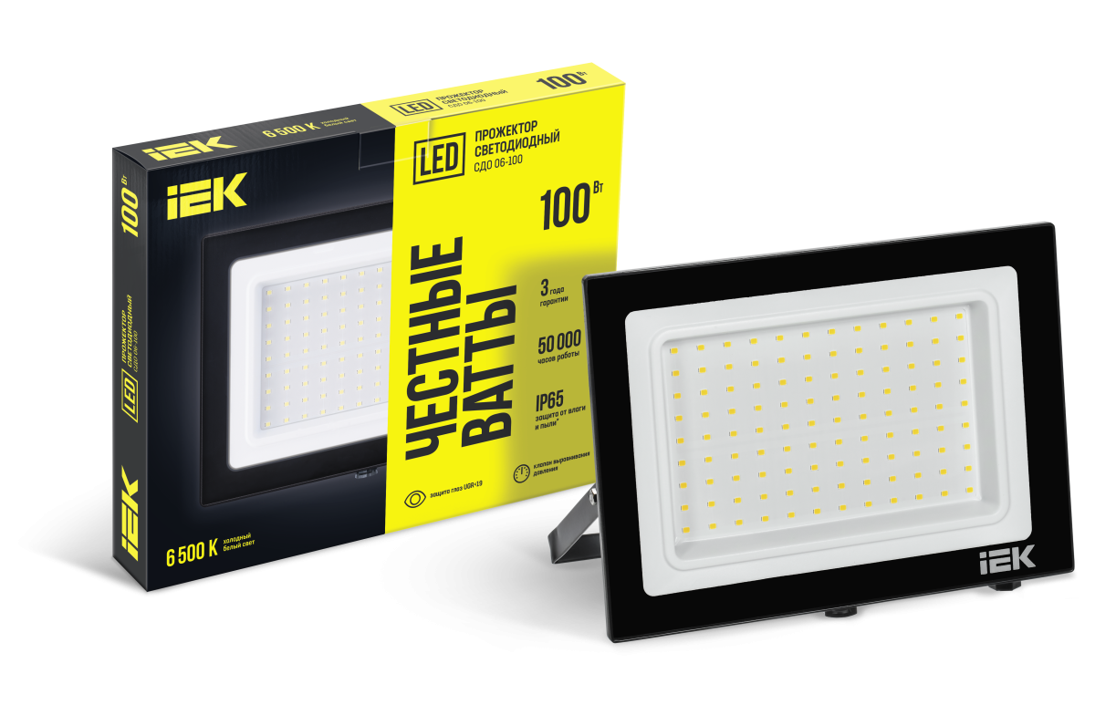 Прожектор100W 8000Lm 6500K светодиодный черный IP65 СДО 06-100 ИЭК (1/5)