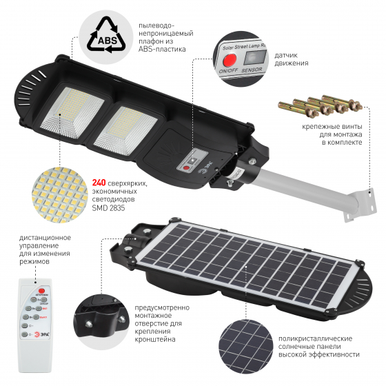 РКУ LED 40W 5000K 700Lm на солн. бат.,SMD,с датч. движ., ПДУ, с кроншт. IP65 ЭРА ЗАКАЗ