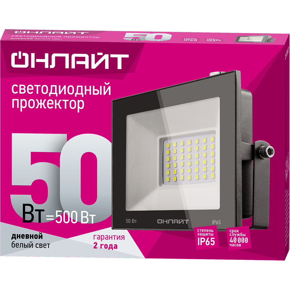 Прожектор 50W 4000Lm 6000K OFL-50-6K-BL-IP65-LED черный ОНЛАЙТ (1/8)