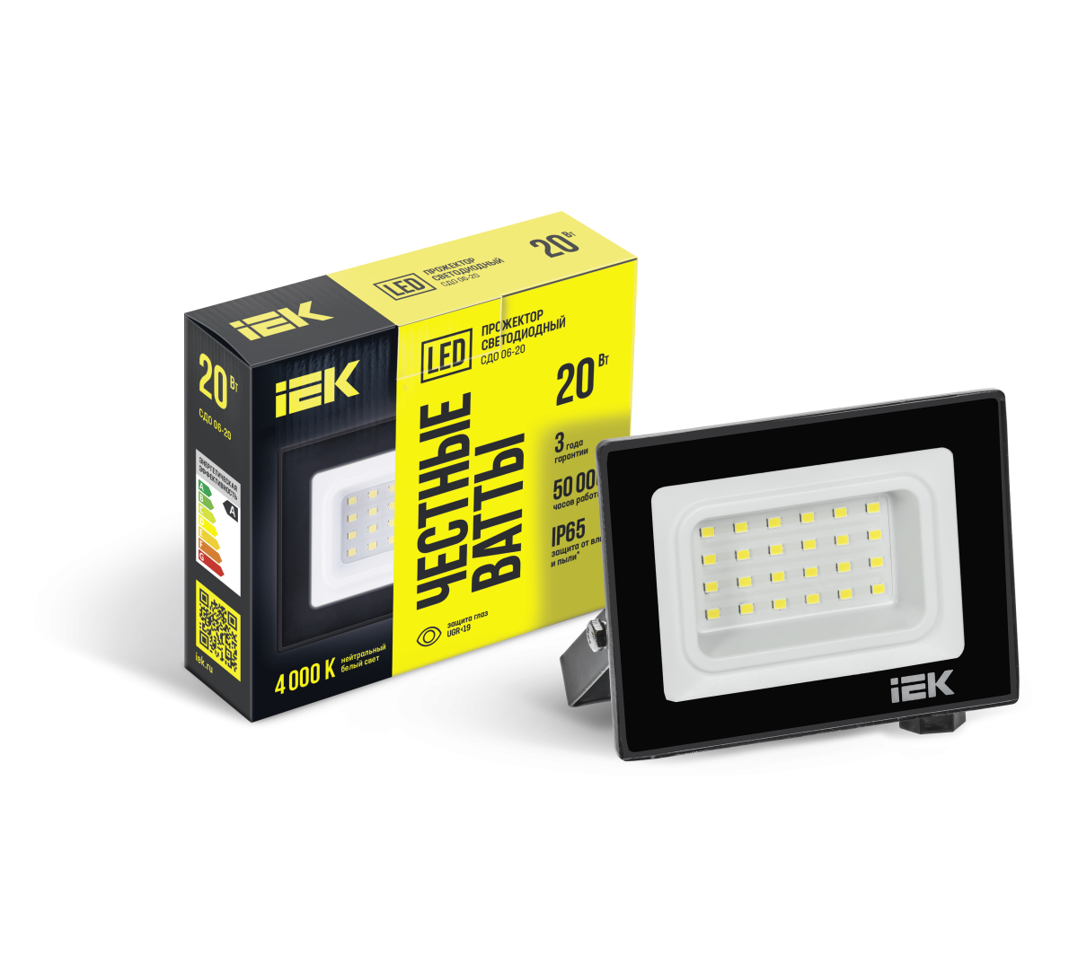 Прожектор 20W 1600Lm 4000K светодиодный черный IP65 СДО 06-20 ИЭК - заказ