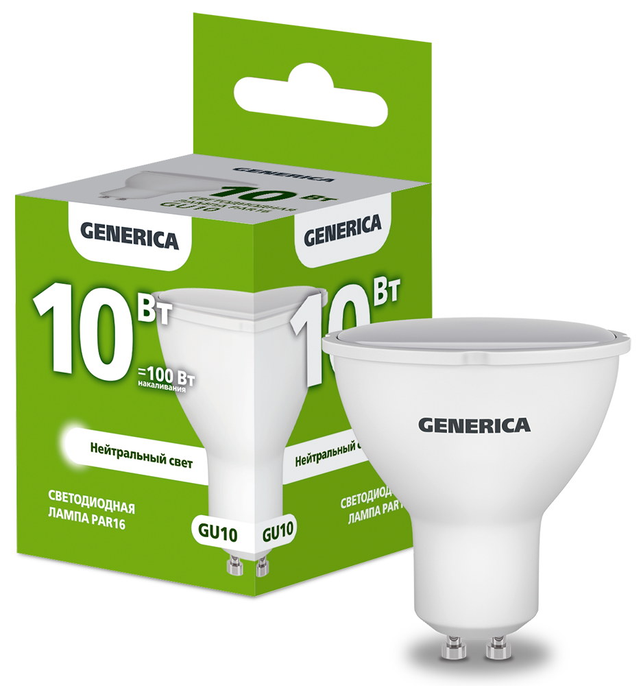 Лампа-LED GU10 10W 4000K 1000Lm 230V PAR16 GENERICA (10/100)
