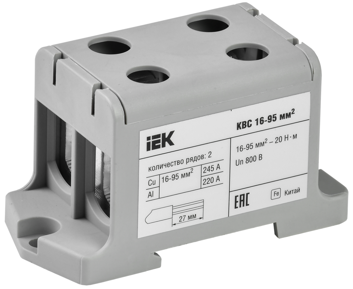 Клемма вводная силовая КВС 16-95 кв.мм. 2-рядная серая IEK (6/72) - заказ