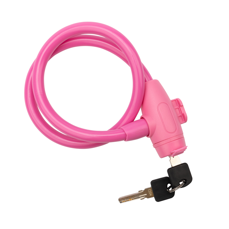 Замок тросовый 65 см взломостойкий для велосипедов и колясок с ключом розовый ЧЕТЫРЕ СЕЗОНА-заказ