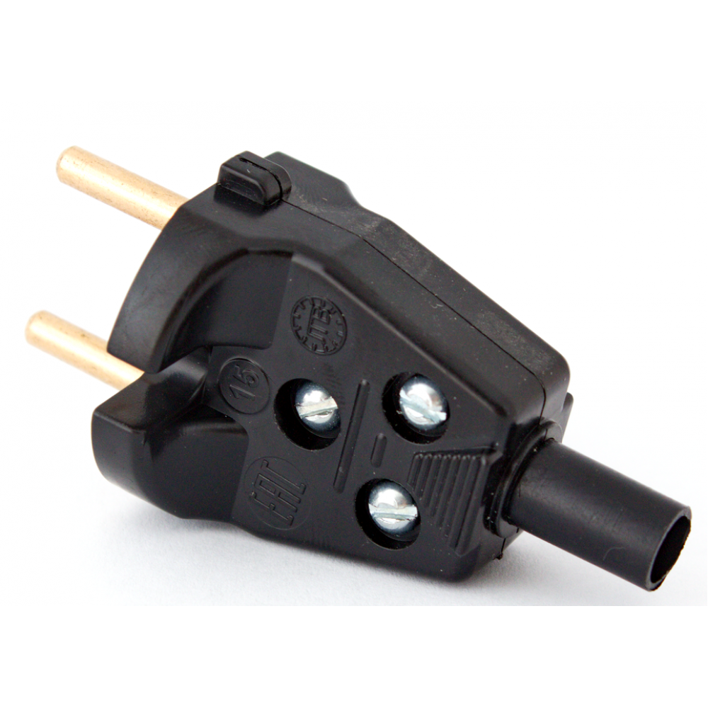 Вилка штепсельная ,изготовлена из пластмассы. Ударопрочна, устойчива к износу. Без заземления, разборная.