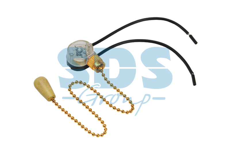 Выключатель для настенного светильника с хромированной цепочкой ,проводами и деревянным наконечником.