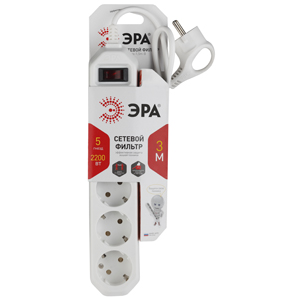 Сет фильтр 5 мест выкл 2Р+Е/3м 3х0,75 10А белый ЭРА
