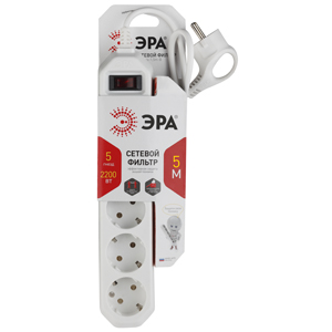 Сет фильтр 5 мест выкл 2Р+Е/5м 3х0,75 10A белый ЭРА