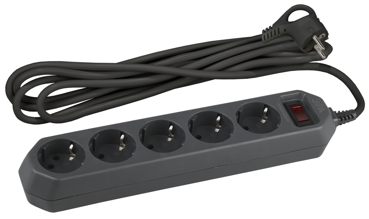 Сет фильтр 5 мест выкл 2Р+Е/5м 3х0,75 10А чёрный ЭРА