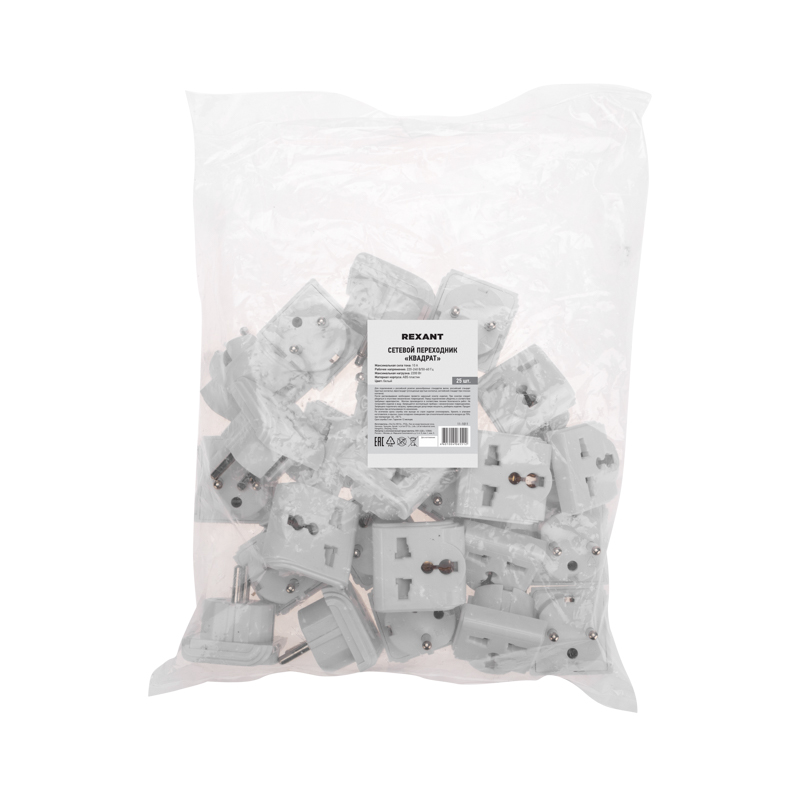 Переходник 10А/250В сетевой белый «Квадрат» REXANT