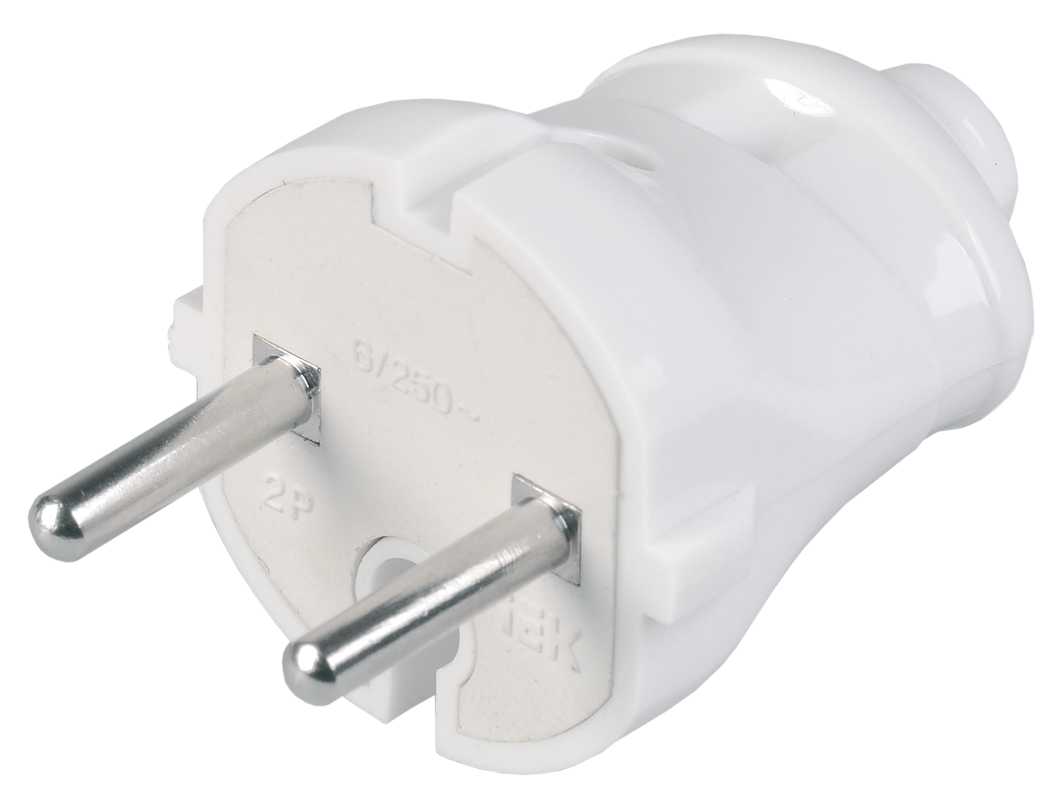Вилка разборная прямая без з/к 6А белая ИЭК ВПп20-01-Ст (80/960)