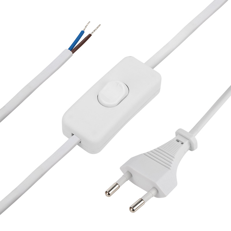 Шнур состоит из провода ШВВП сечением 0,75 мм?, укомплектованного литой неразборной плоской вилкой (Евро), номинальным током 4 А, с подготовленными (зачищенными и лужеными) контактами, посередине провода расположен выключатель в корпусе из ABC пластика.