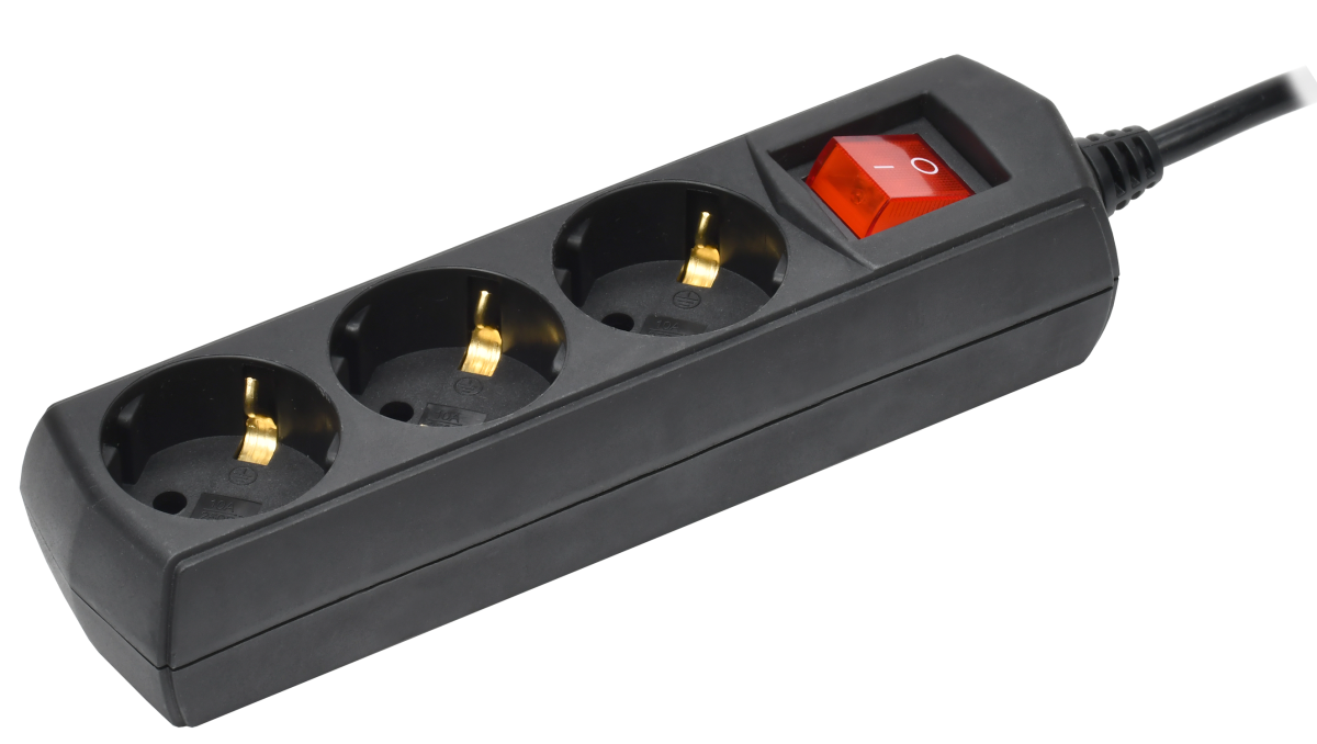 Удл 3роз*5м с выкл з/к черн ПВС 3*1,0 IEK GENERICA