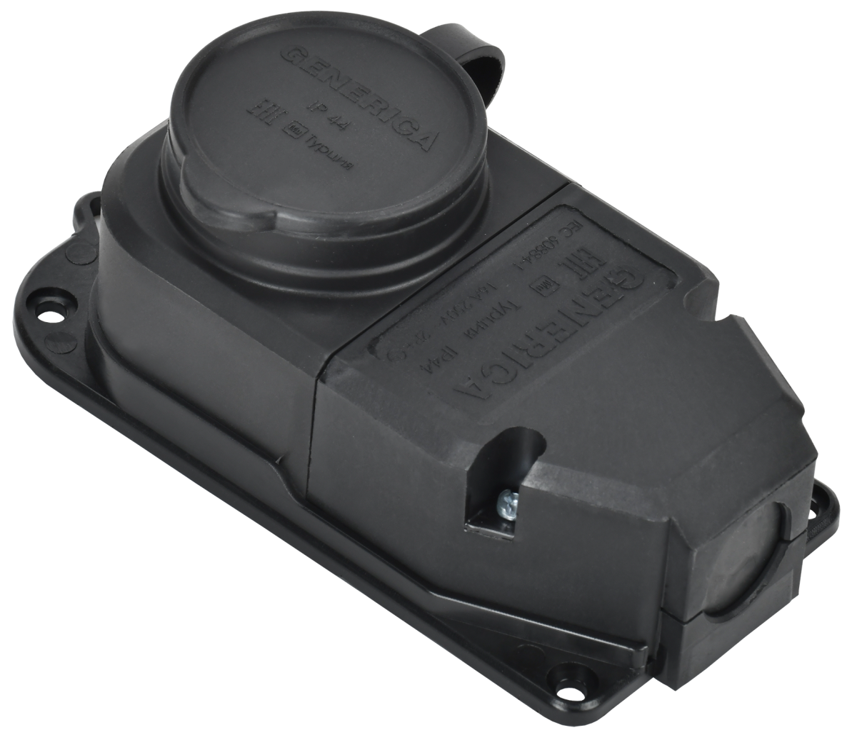 Колодка каучук 1 гн. з/к, с крышкой ОУ IP44 черная GENERICA
