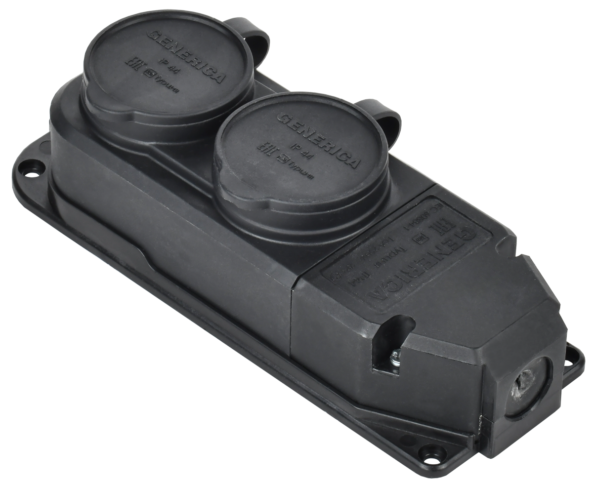 Колодка каучук 2 гн. з/к, с крышками ОУ IP44 черная GENERICA (1/14/112)