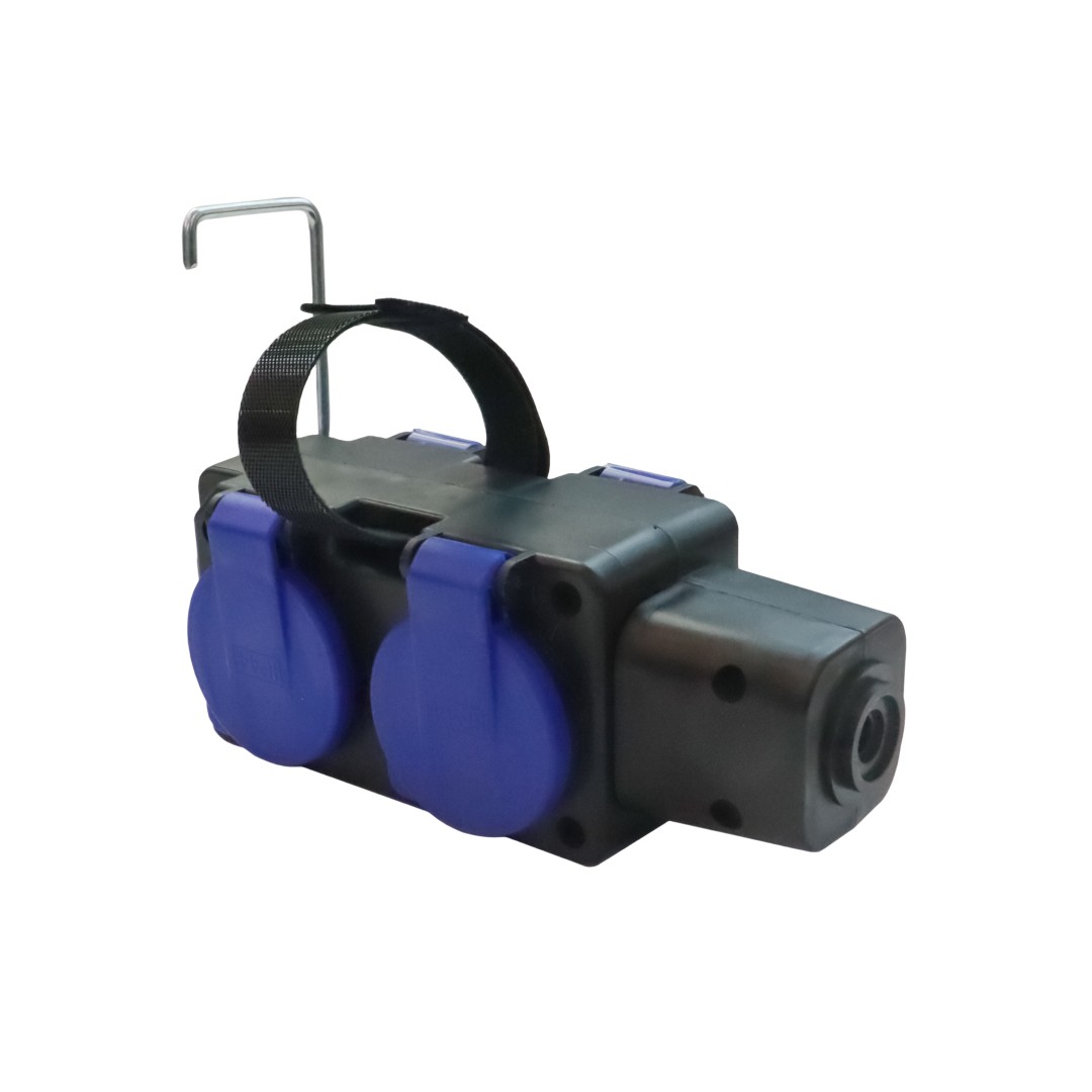 Розетка переносная имеет два крепёжных элемента: в виде металлического крючка и хомута-липучки. Это позволяет удобно использовать устройство на высоте, прикрепив его к ремню электрика-монтажника. Область использования: цеха производственных помещений, строительные площадки, машиностроение, бытовое использование. Крышки надёжно закреплены, обеспечивают защиту от попадания внутрь разъема пыли и влаги. Высокая ударная прочность, в том числе при низких температурах. Подходит для работы в экстремальных условиях. Материал изделия – полипропилен и каучук: