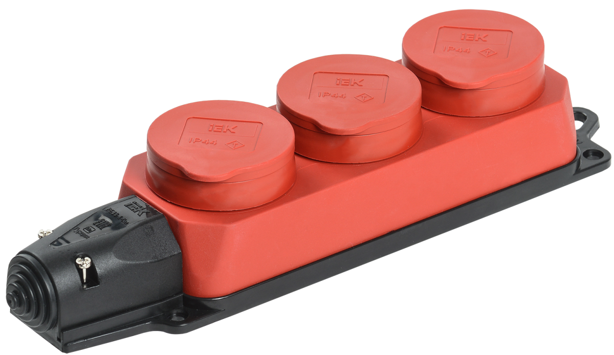 ОМЕГА Розетка каучук 3-х м с крышками ОУ IP44 красн. ИЭК РБ33-1-0м (10/120)