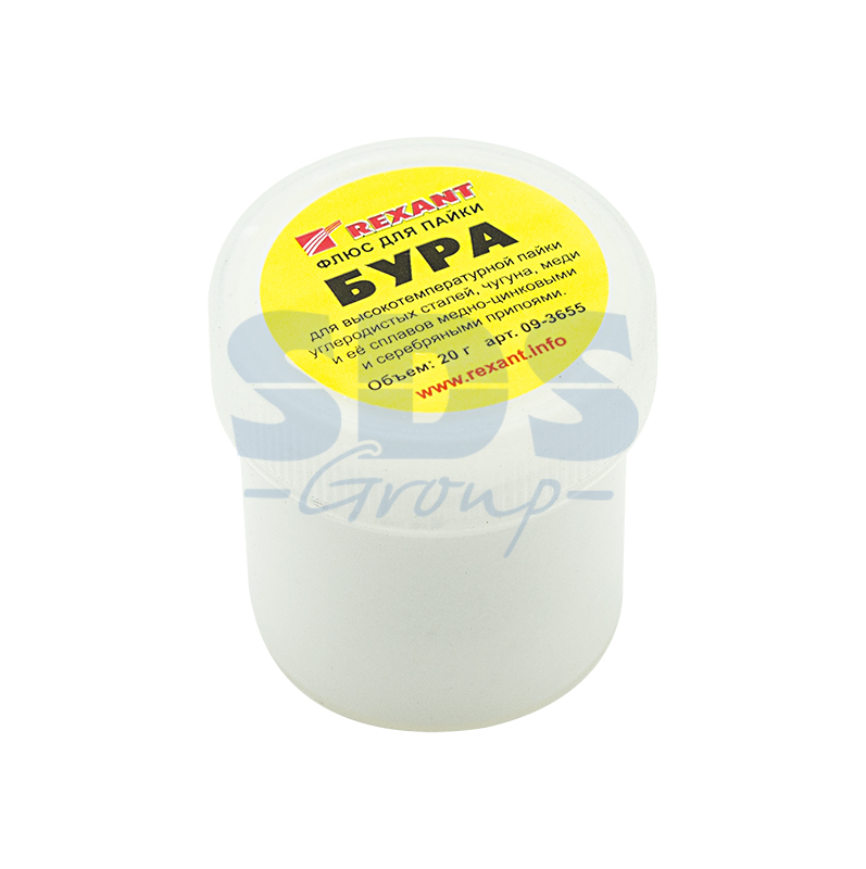 Флюс для пайки БУРА 20гр REXANT предназначен для удаления оксидов с поверхности под пайку, улучшения растекания жидкого припоя при пайке углеродистых сталей, чугуна, меди и её сплавов медно-цинковыми и серебряными припоями. Представляет собой порошок белого, светло-серого или подобных оттенков цвета, и позволяет осуществлять сплавление обычных металлов с благородными посредствам газопламенного нагрева. Является самым распространенным флюсом, который используется для пайки ювелирных украшений из золота, серебра, мельхиора. Данный высокотемпературный флюс применяется при пайке деталей или поверхностей в температурном диапазоне 800-1150?. В расплавленном состоянии бура способна растворять оксиды металлов. После пайки, во избежание коррозии, требует промывки горячей водой с использованием кисточки или щетки.