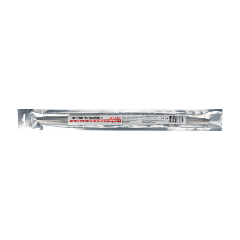 Припой пруток ПОС-61 ?8 мм REXANT предназначен для создания механически прочного и герметичного соединения деталей между собой или для их фиксирования на плате (пайка и лужение радиоэлектронных приборов, медицинской аппаратуры, автодеталей, печатных плат, электроаппаратуры и т.д.).