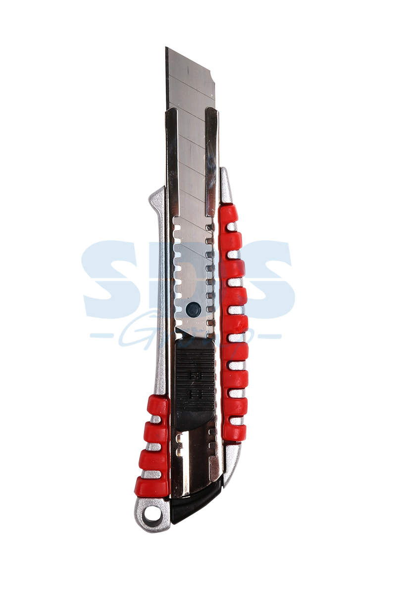 Корпус ножа металлический с обрезиненной рукояткой, что позволяет прикладывать значительное усилие при резке, и обеспечивает долгий срок службы.