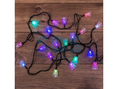 Гирл НИТЬ 2,8м "КОЛОКОЛЬЧИКИ" , цвет RGB,IP 20, 20 диодов,черный ПВХ, контроллер с 8 режимами