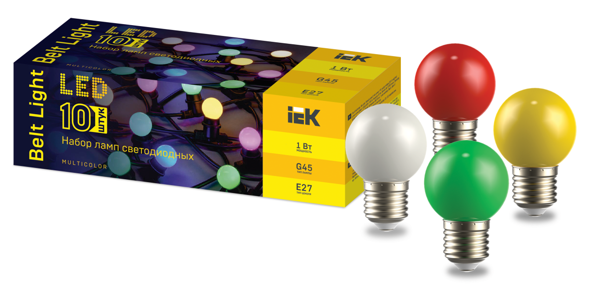 Белт-лайт Набор ламп светодиодных декоративных G45 шар 1Вт 230В MIX E27 10 шт IEK ЗАКАЗ