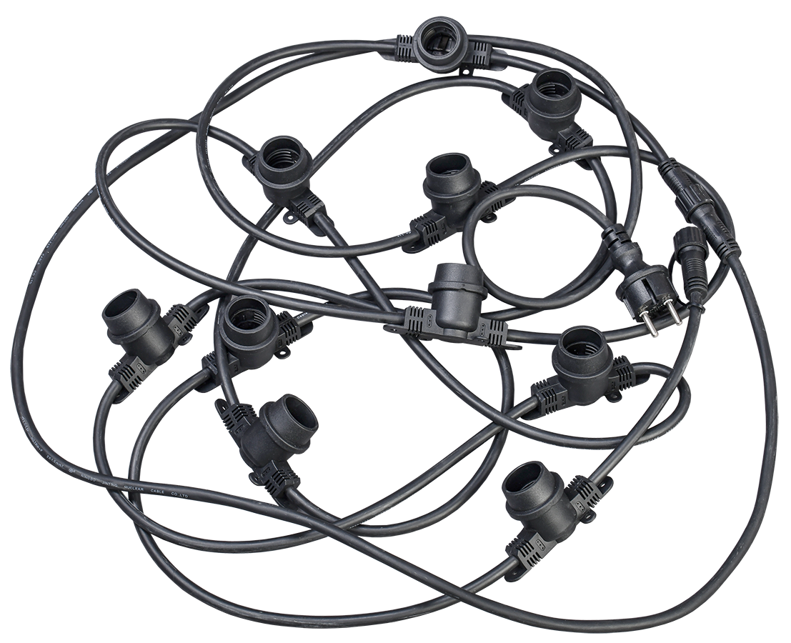 Гирл. Белт-лайт 10м 20 патронов E27 без ламп IP65 черный шнур 2м 230В транзит IEK ЗАКАЗ