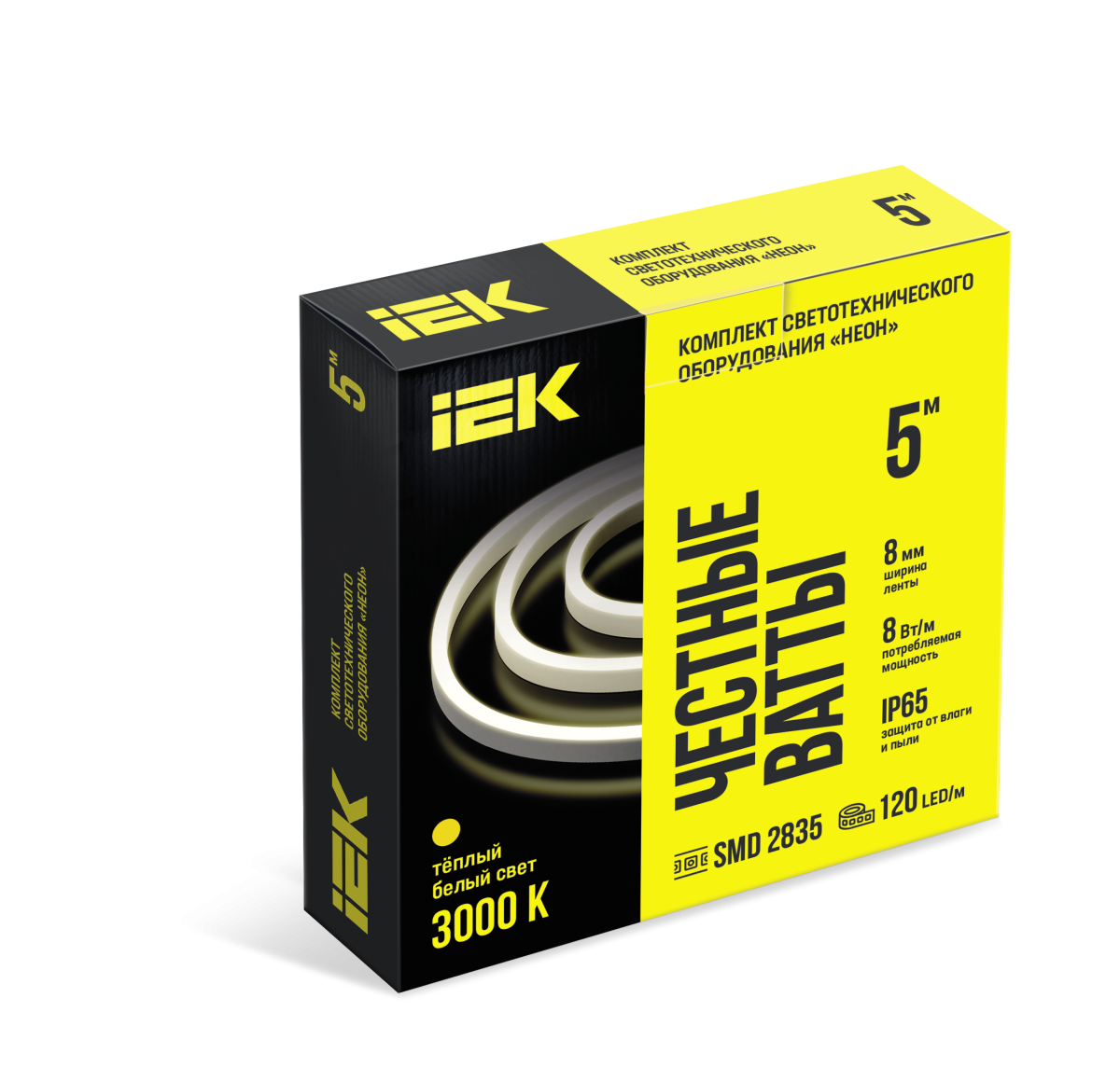 Лента LED НЕОН 8W/m LSR5-2835WW120-8-IP65-220В + драйвер 5м хол. бел. IEK - заказ