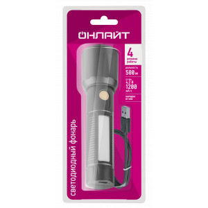 Фонарь ручной 1LEDх5Вт+6LEDх1,2Вт,Li-ion1,2Ач OPT-CP07-ACCU пласт 4реж ОНЛАЙТ