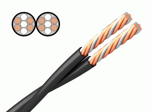 Две токопроводящие жилы, состоящие из 3-х стальных и 4-х медных проволок диаметром 0,3 мм, скрученные между собой в пару. Диаметр жил – 0,5 мм.