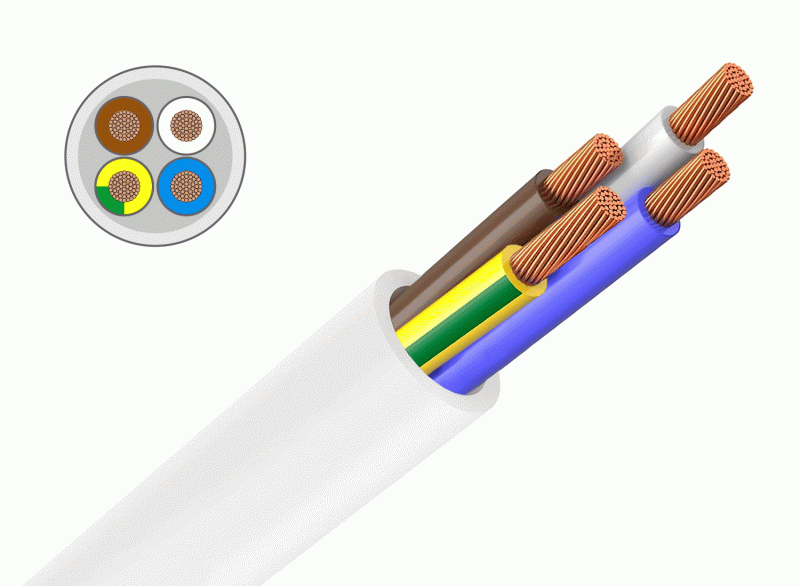 Провод со скрученными жилами, с ПВХ изоляцией, с ПВХ оболочкой, на напряжение до 380 В для систем 380 / 660 В.