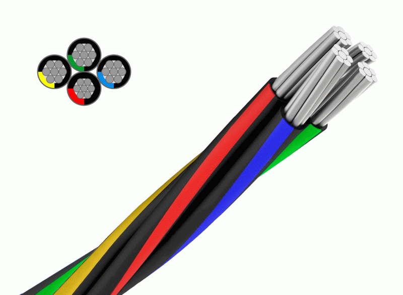 4 – Вид конструкции: самонесущий провод с 4-мя фазными токопроводящими жилами из алюминия, с полиэтиленовой изоляцией на напряжение 0,66, 1 кВ.