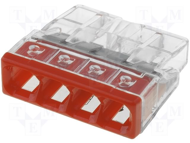 Электромонтажные экспресс-клемы WAGO 2273-204 позволят безопасно и быстро соединить 4 провода между собой (алюминиевые и медные как одножильные, так и многожильные).