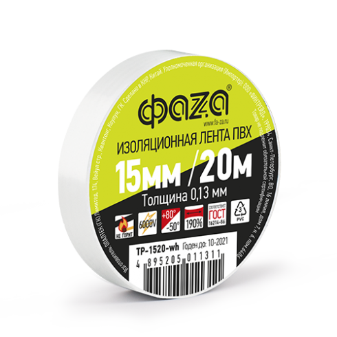 Изолента 15мм/20м белая ФАZА уп.10/200