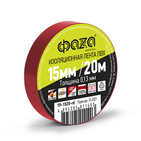 Изолента 15мм/20м красная ФАZА уп.10/200