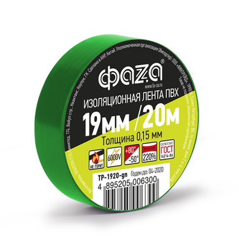 Изолента 19мм/20м зеленая ФАZА уп.10/200