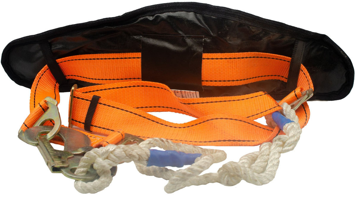 Для защиты от падения с высоты используется со стропами из ленты, металлического троса в ПВХ оболочке, каната или цепи для удержания и позиционирования на высоте. Привязь отдельно , без стропа, не может использоваться как средство, защищающее от падения с высоты.
