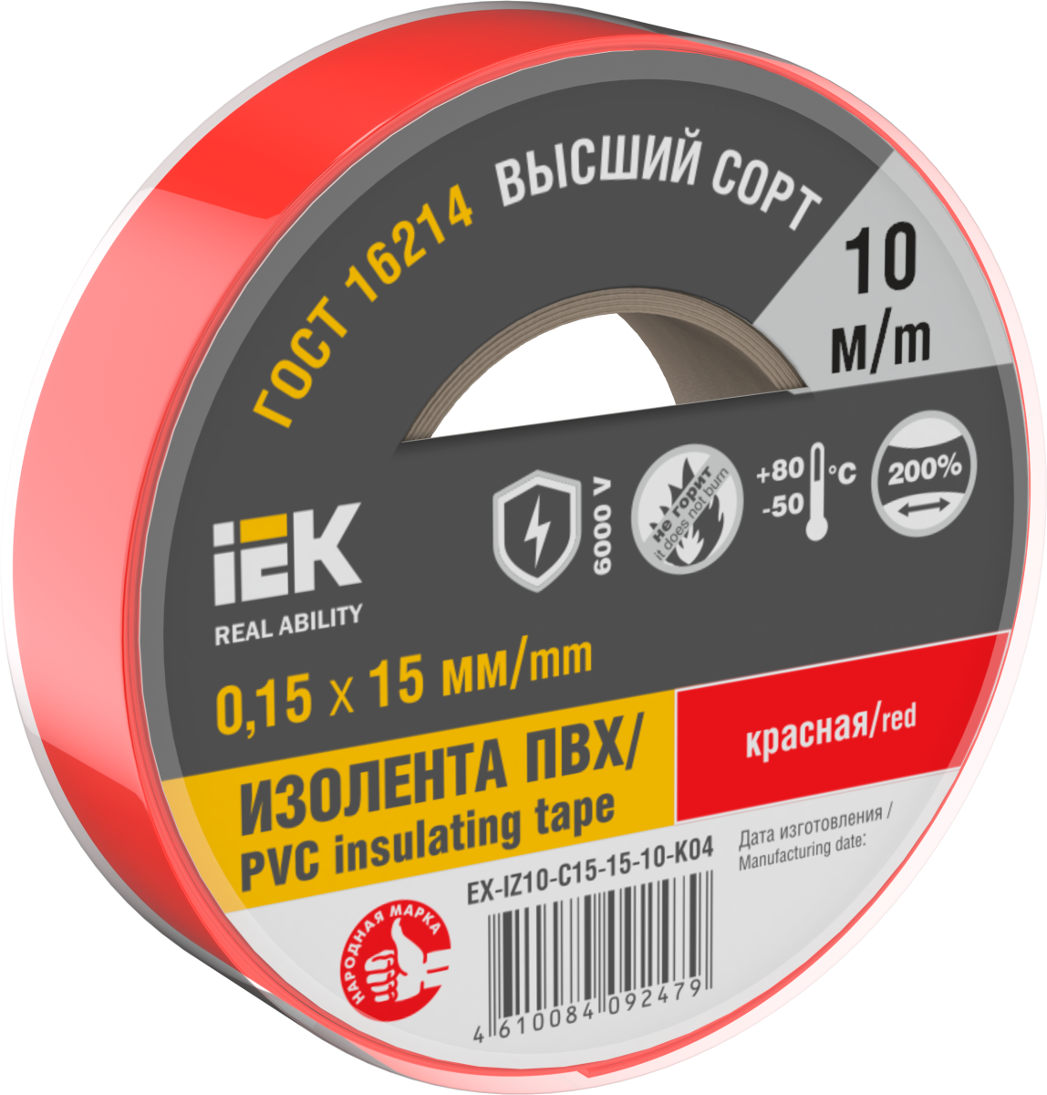 Изолента 15мм/10м красн 0,15 мм ИЭК (10/250) - заказ
