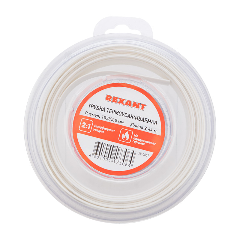 ТУТ 10,0/5,0 мм белая, ролик 2,44 м REXANT-заказ
