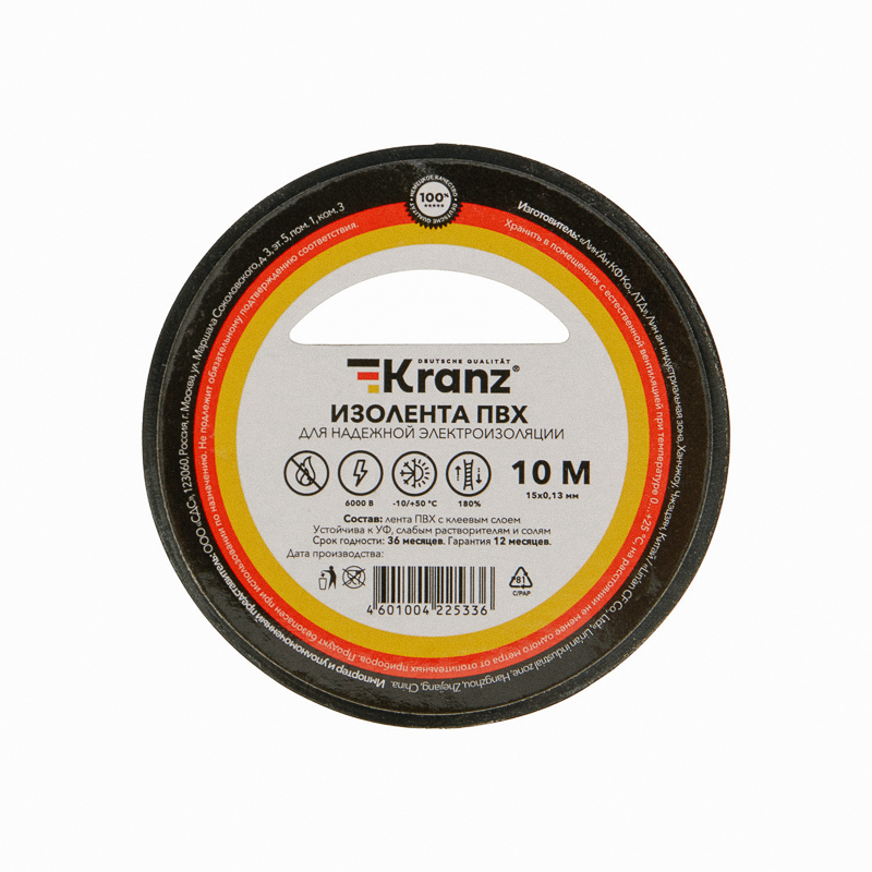 Изолента KRANZ предназначена для электрической изоляции, цветной маркировки, соединения, защиты от внешних факторов и герметизации кабелей, проводов и шнуров.