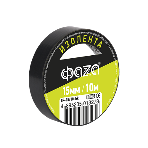 Изолента 15мм/10м черная ФАZА уп.10/200