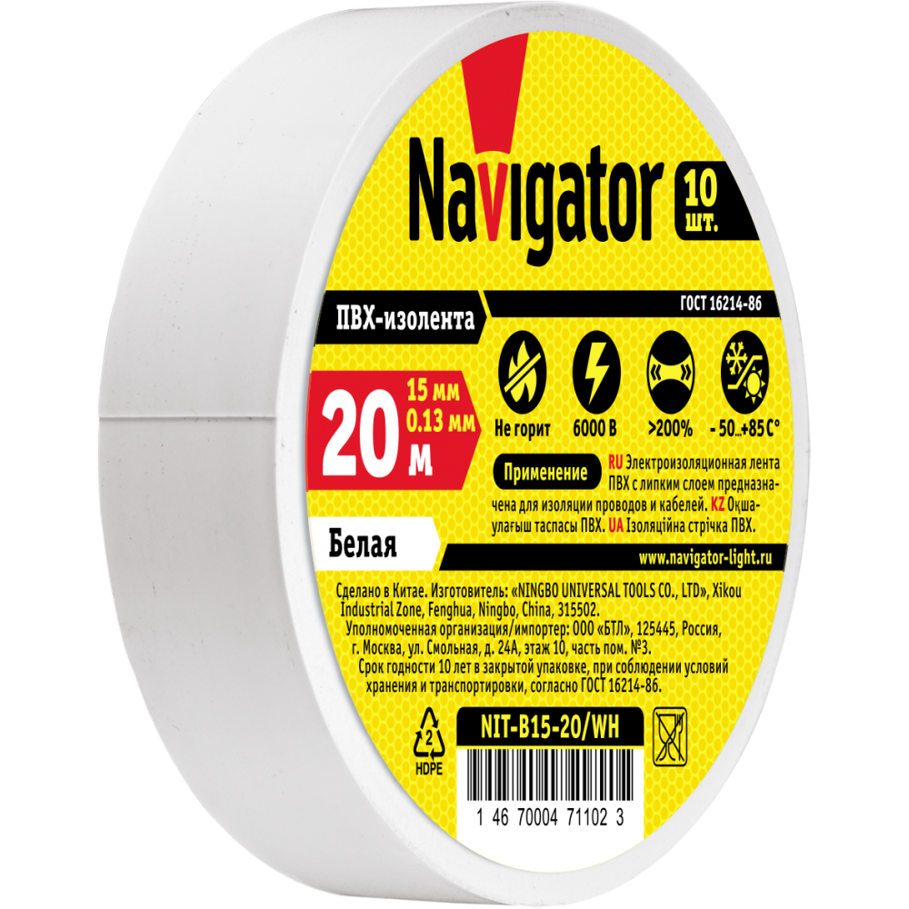 Изолента 15мм/20м белая Navigator(10/200шт.)