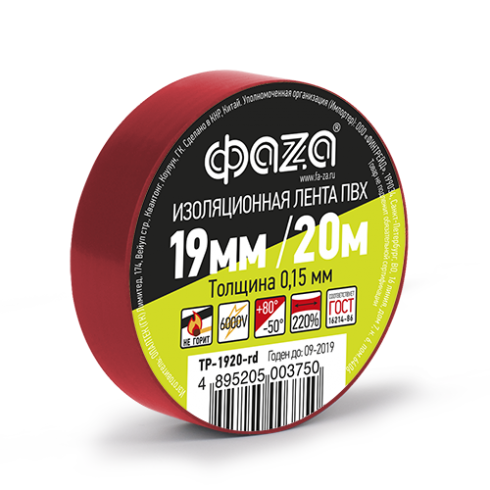 Изолента 19мм/20м красная ФАZА уп.10/200