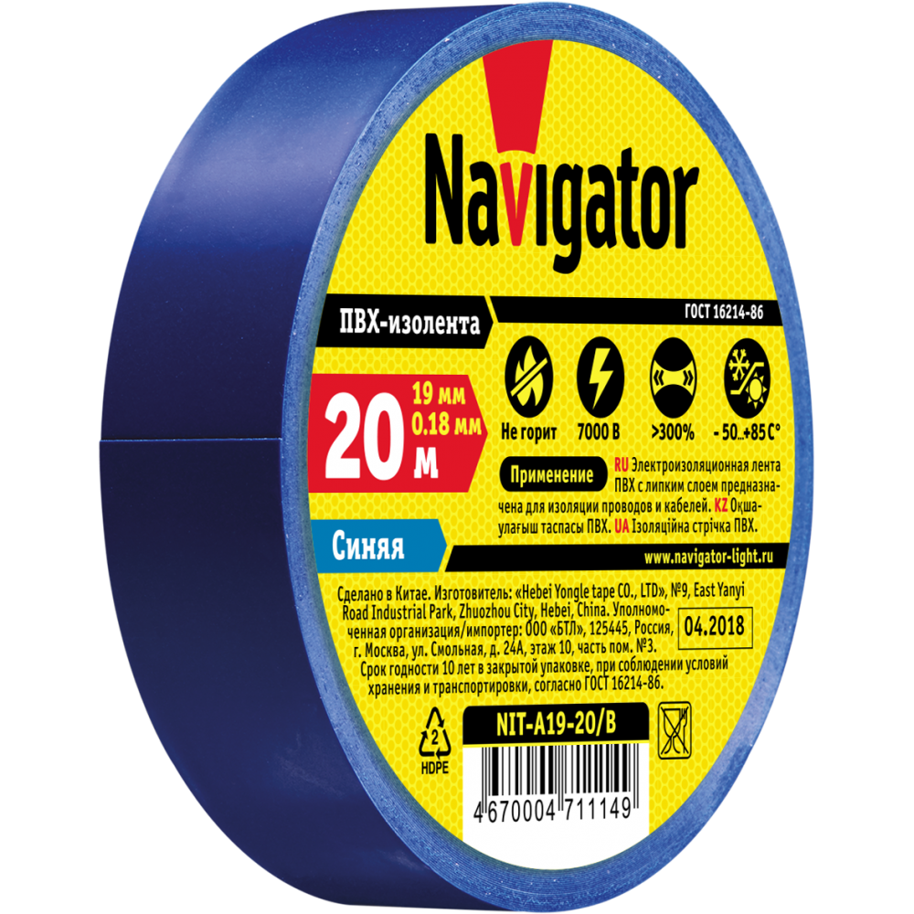Изолента 19мм/20м синяя Navigator (10/200шт)