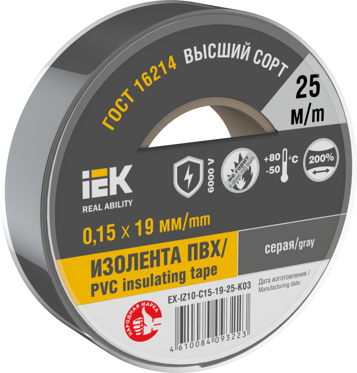 Изолента 19мм/25м сер 0,15 мм ИЭК (10/160) - заказ