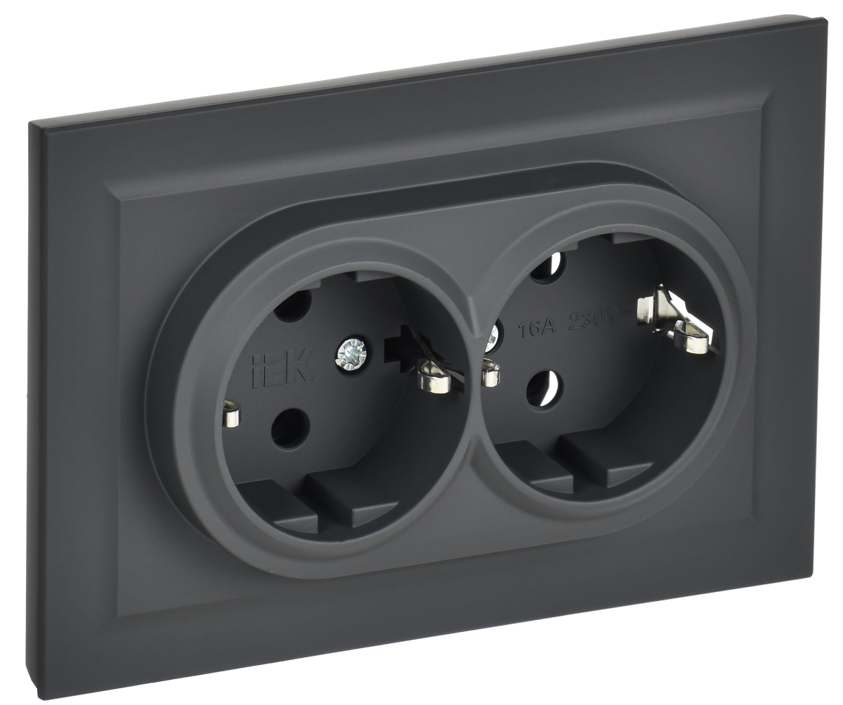 Брайт Розетка СУ2 с з/к в сб 16А РС12-3-БрГ графит BRITE IEK - заказ