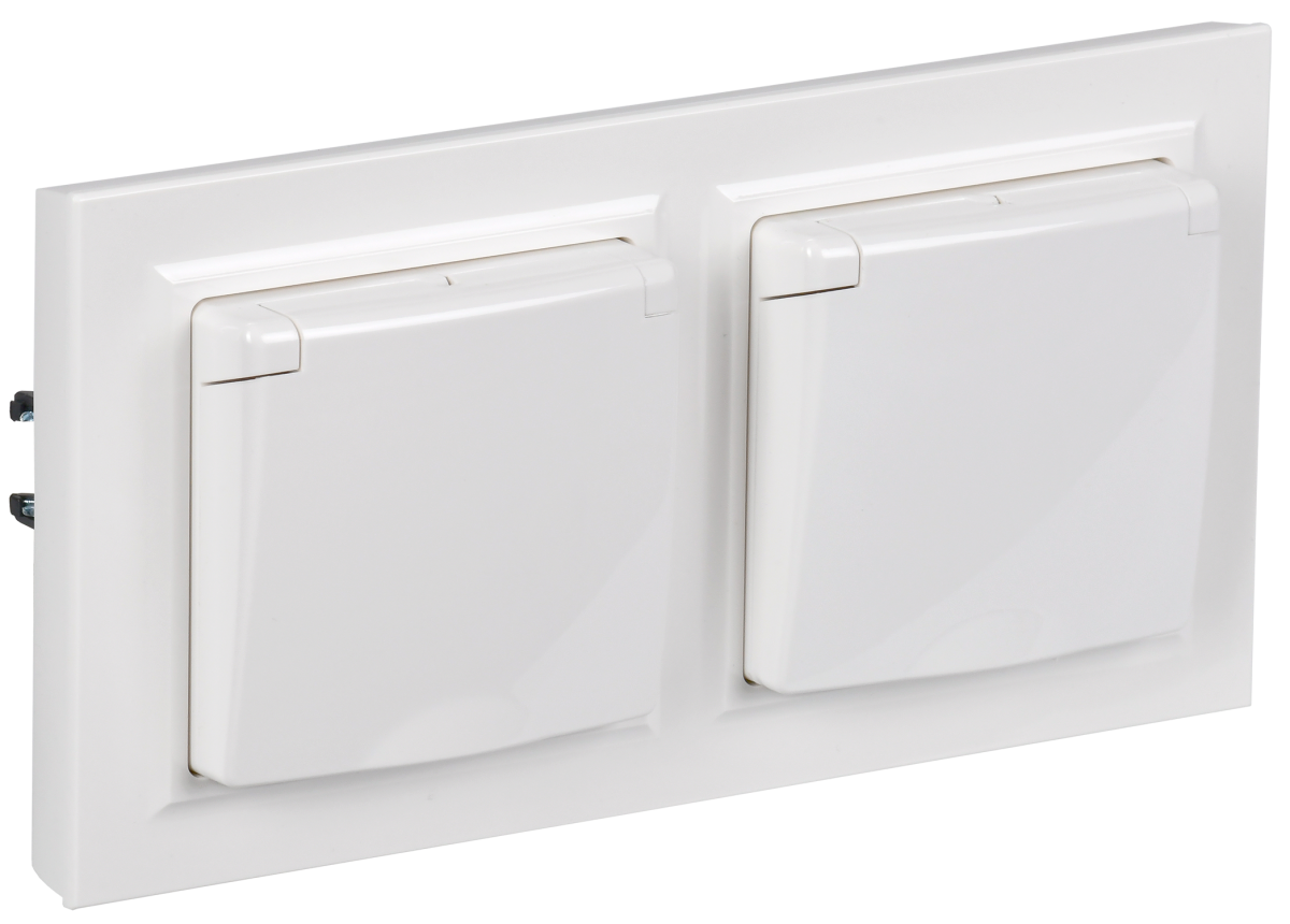 Брайт Розетка СУ1 ПГ с з/к 2шт в сборе с дв.рамкой16А IP44 РСбш10-3-44-БрБ белый. BRITE IEK - заказ